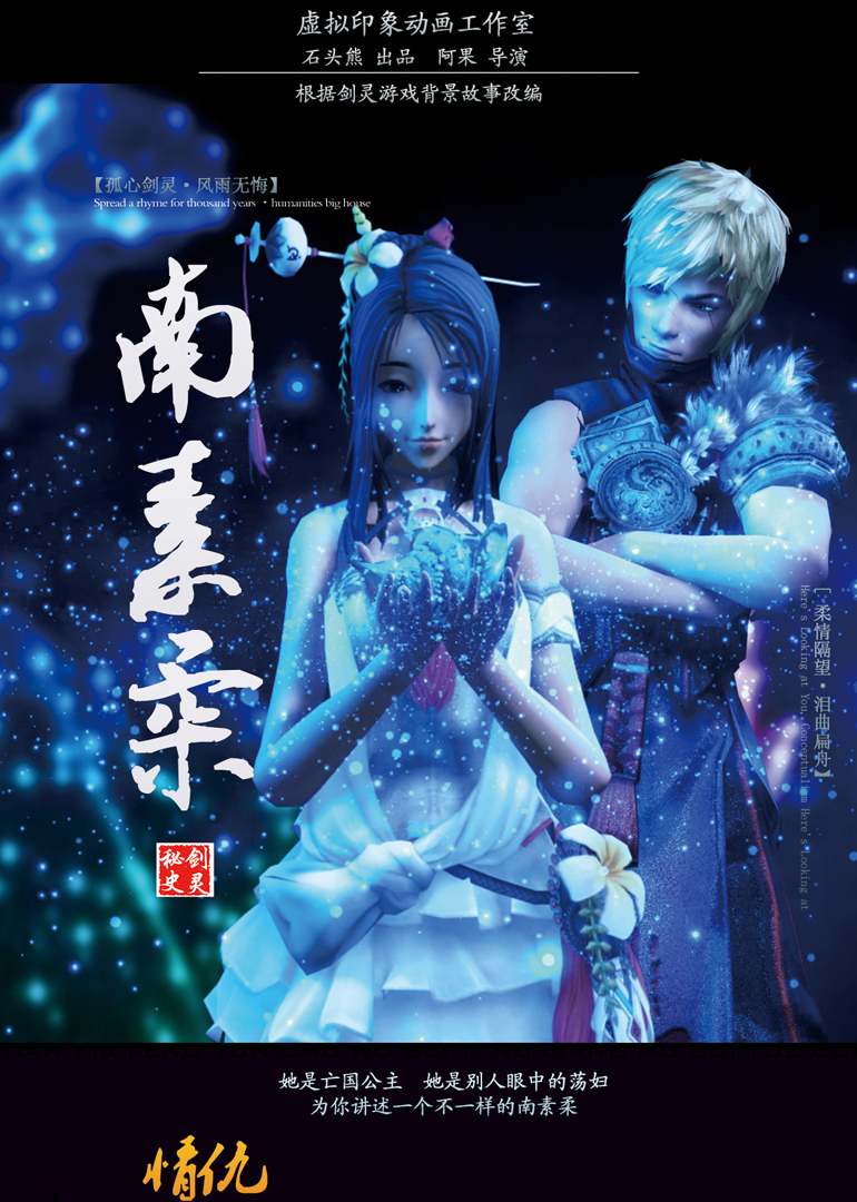 素有剑灵第一美女的南素柔,在游戏当中有着离奇的身世和虚荣的心理,其清新优雅的外表下却有一个闷骚的内心,由于巨大的内外反差,使得玩家们又恨又爱,绿茶婊成了她的代理名词。然而果真如此吗?一个亡国公主的显赫身份,背负着国仇家恨的少女,她为什么如此上心攀缘富贵?她跟肖四海的爱情难道只是水面浮萍?为何肖四海对她誓死相报?究竟谁是真正的南素柔,还要期待动画上映的时刻。