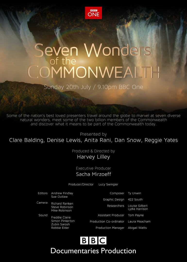 这个趣味十足的精彩旅程将围绕着英联邦最独特、最令人惊奇的七大奇迹展开。为了迎接英联邦运动会的到来,主持人克莱尔•巴尔丁,丹尼斯•刘易斯,安妮塔•拉尼,丹•司侬和雷吉•耶茨将环游全球,造访七个不同的自然奇迹,并从英联邦的二十亿成员中选出一些人进行采访。他们要冒险前往地球上最古老的沙漠、最原始的雨林、全球最大的瀑布、最大的红树林沼泽,最密集的珊瑚礁以及全球最壮观的峡湾之地。而最后一个奇迹就在运动会场馆附近的一个洞穴深处。此外,他们还将在旅途中,逐渐揭开成为英联邦的一份子究竟有何意义。