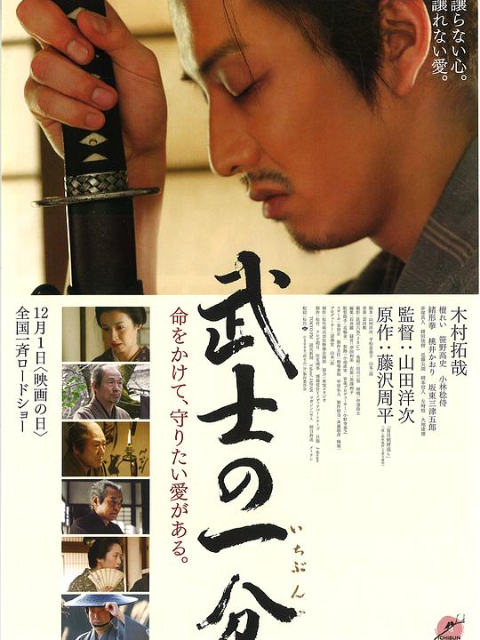 三村新之丞(木村拓哉饰)是名平凡的下级武士,他的工作是帮藩主试毒,备好的饭菜先由试毒者吃,确认没有不良反应后才会给主人吃。就在一次试毒中,新之丞双目失明,失去眼睛无异于废人,他的命运急转而下,幸而美貌贤惠的妻子加世(檀丽饰)帮助下,他才重新面对生活。但三村一家由此失去了生活来源,在亲友建议下,为了维持生计,加世拜托上级武士岛田藤弥(坂东三津五郎饰)向藩主求情,希望能保住一半薪俸。可岛田以新之丞的薪俸为要挟,强迫加世委身于他。新之丞得知后,无法接受事实,休掉了妻子并决定和岛田决一死战,挽回比生命更加宝贵的武士尊严。
