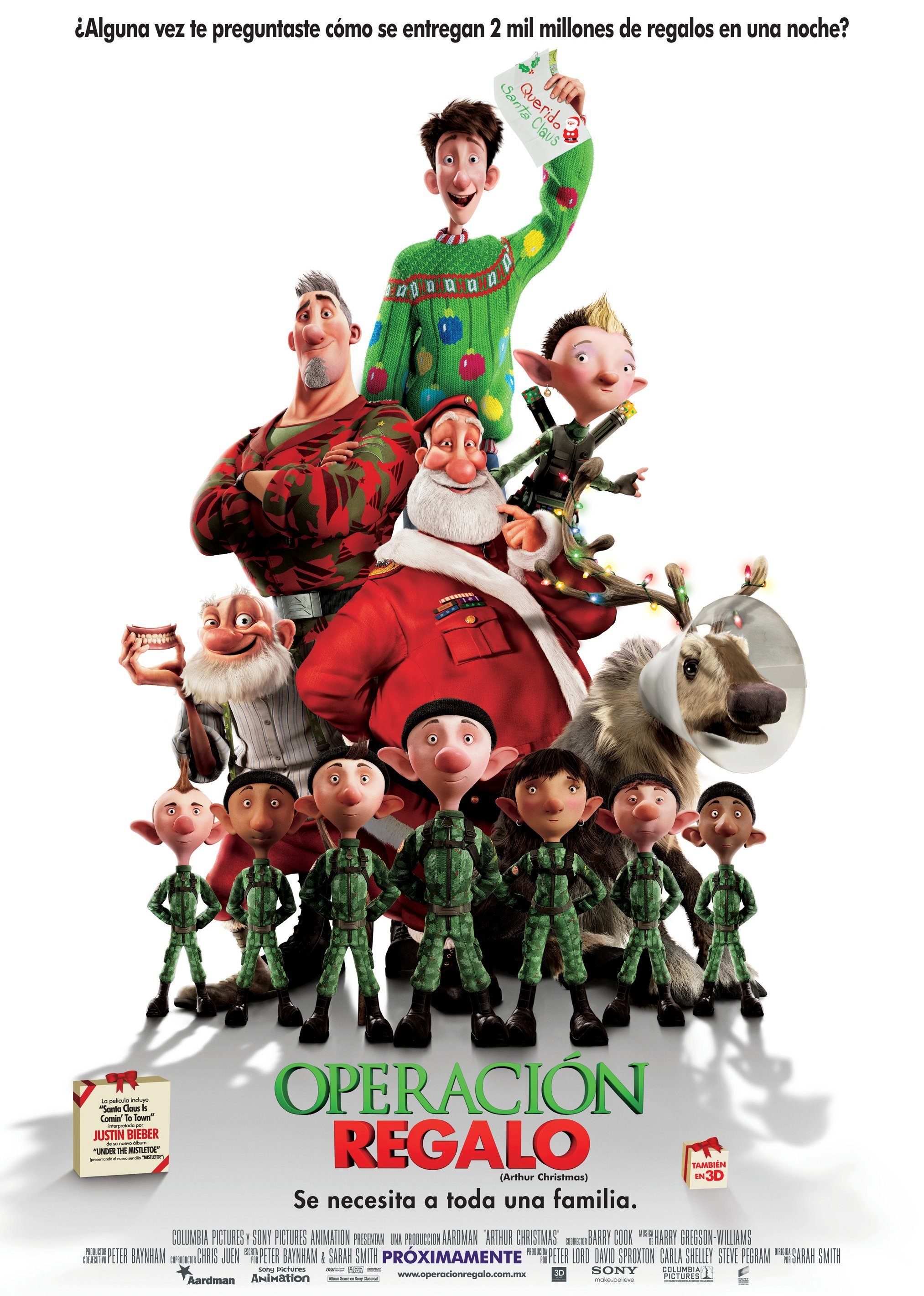 每年的圣诞节前夕,圣诞老公公的馈赠是全世界儿童最大的期盼。时至今日,圣诞老人也与时俱进,现役圣诞老人马尔科姆(Jim Broadbent 配音)乘坐最先进的S1飞行器,与成千上万的小精灵在圣诞夜飞遍全世界,给数亿儿童送去礼物。而他的长子史蒂夫(Hugh Laur ie 配音)则坐镇位于北极的中央控制室,通过最先进的设备指挥礼物的发放工作。崇尚技术的史蒂夫坚信自己将成为下一年的圣诞老人,无奈父亲老当益壮,丝毫没有退休的意思。可惜百密一疏,今年居住在英国某郡的小女孩没能收到礼物。被父亲称为麻烦精的亚瑟(James McAvoy 配音)不忍女孩失望,于是和他那丝毫不服老的爷爷——上一代圣诞老人(Bill Nighy 饰)乘坐被封存在仓库里的雪橇踏上补送礼物的征程。距离天亮还有两小时,亚瑟和爷爷争分夺秒向英国冲刺…… 本片荣获2012年安尼奖最佳配音奖(Bill Nighy)。