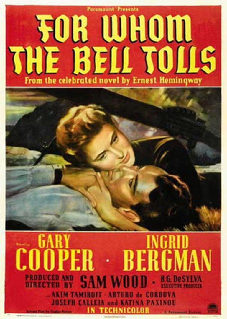 背景是1937年的西班牙内战。来自美国的大学老师罗勃跟白求恩一样到西班牙帮助当地人民抗击法西斯。他在完成炸火车任务后,被派一项新任务:跟自发组成的游击队联手,炸毁峡谷上的铁桥。他认识并爱上了美丽的玛莉亚。玛莉亚是市长的女儿,但父母均被法西斯杀害,玛莉亚也遭侮辱。在共同理想的催化下,他们相爱了,但罗勃却在这场战斗中牺牲。