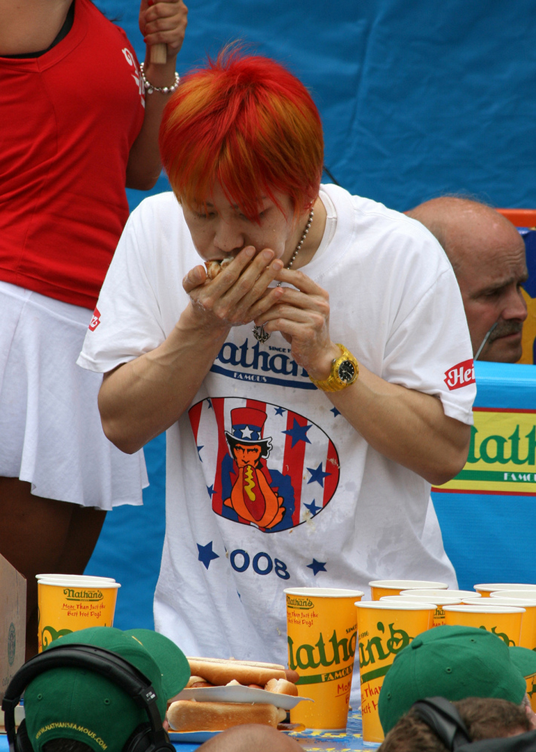 专业的速食者也是暴食者,从吃热狗比赛到吞牡蛎大赛,这些活动都是为了满足人们的胃口。但是,真正的饮食界冠军很少超重。事实上,世界上食量排名前五的人之中,有一位是一个百磅的女人。没有人知道她如何能打败体型比她大两倍的男人。医生们首次将目光放在一个有竞争力的食客的消化系统中,看看速度进食的秘密是否能对消化不良等常见消化问题的治疗方法提供帮助,他们希望揭示这些正常的人是如何能够忍受如此巨大的食物量的。