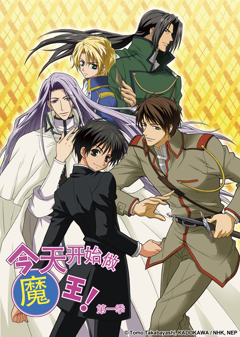 今天开始做魔王改编自乔林知的人气轻小说作品《今天开始从事自由职业的魔王》。自2004年动画化后在NHK放送,因其俊美华丽的人设及声优阵容博得了不少女性观众及声优控们的的喜爱。《今天开始做魔王》的主角涉谷有利,本是一个普通高中生,因某次见义勇为却双拳难敌四手被坏孩子拉入厕所用抽水马桶送往了异世界。现世亚洲地区随处可见黑发黑眼睛的有利却在异世引起了骚动,因为“双黑”有利就变成了伟大的第27代魔王阁下,引发了许多“除恶扬善的动人故事”,而陆续登场的美男们也是本作的又一亮点,比如美丽的贵族少年也是有利的未婚X拉、忠心护主在观众中人气几近超越主角的真魔国第一剑士前魔王大人次子孔拉德拉、还有那个为真魔国劳心劳力还爱好编织毛线的大叔拉、身居要职却无论到哪都沉浸在自己世界发痴整天唠唠叨叨的某位银发男……